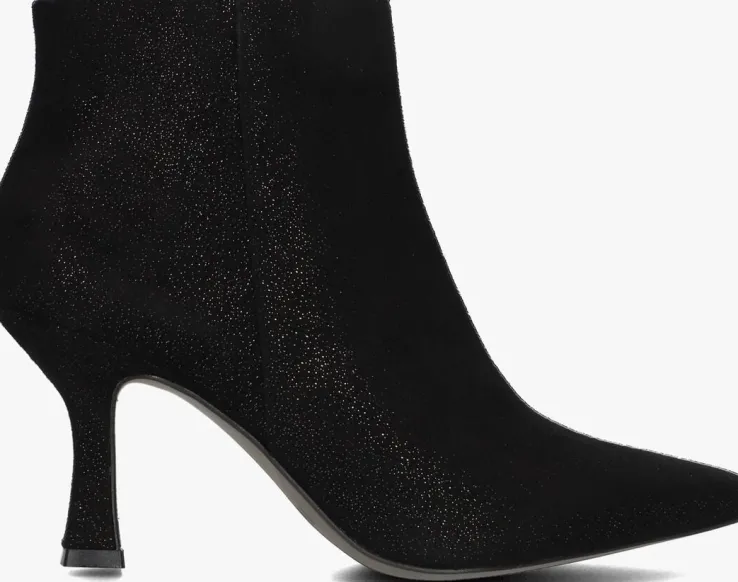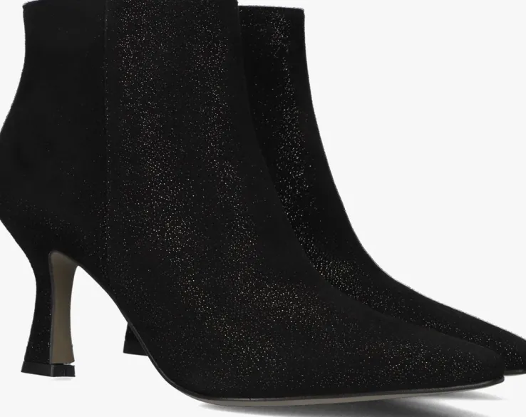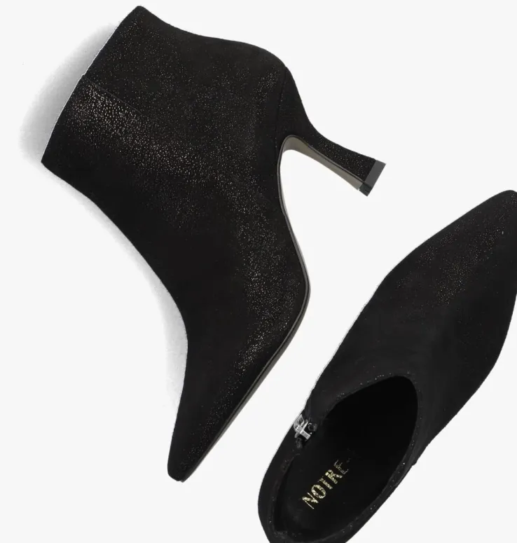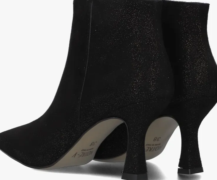 De Italiaanse ontwerpen van het merk NOTRE-V zijn er voor de verfijnde vrouw die er graag effortless chic uitziet. Dit enkellaarsje 21033 met subtiele accenten maakt jouw look compleet! Hij is gemaakt van zwart suède met zilverkleurige glitters, heeft een puntige neus én een elegante kitten heel van 8 centimeter hoog. Leuke details zijn de merkstud op de achterkant van de schacht en het merkreliëf op de zilverkleurige rits. De schoen is leer gevoerd en heeft een vast voetbed met demping voor comfort. De schachthoogte is 9,5 centimeter, gemeten bij maat 38. Draag deze stijlvolle laarsjes onder een jeans of jurk en je bent helemaal klaar voor een nieuwe, mooie dag!