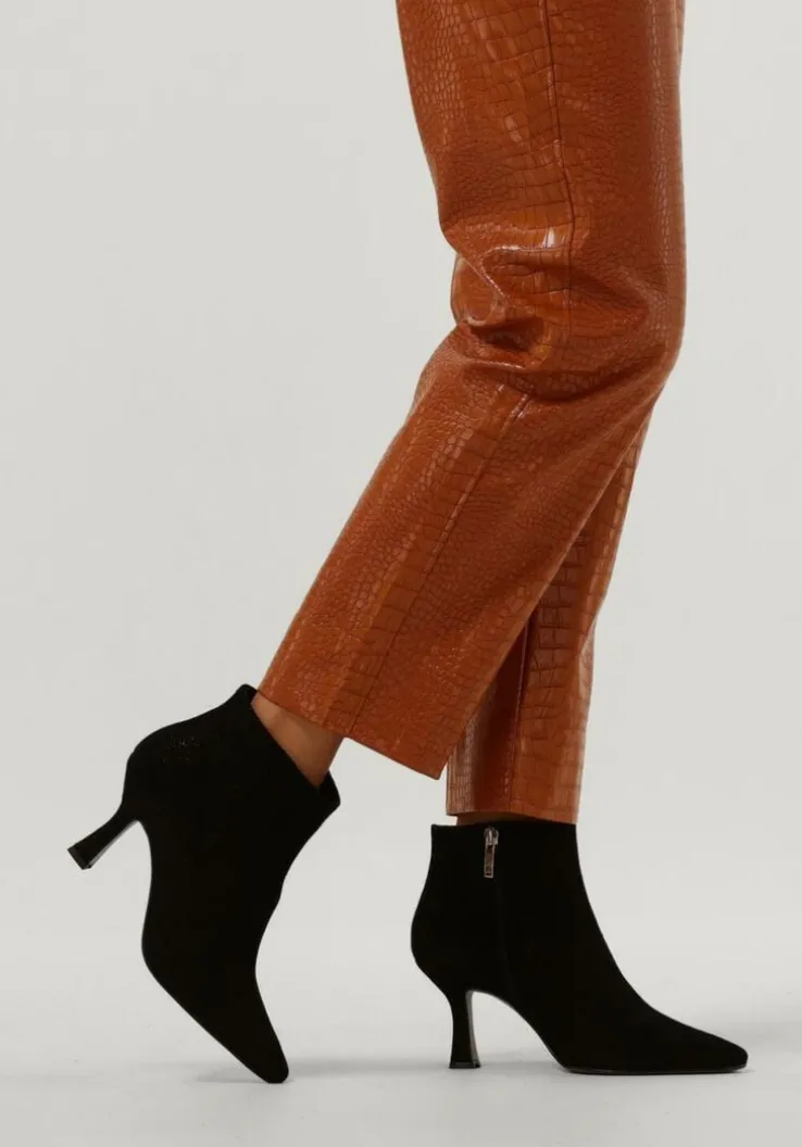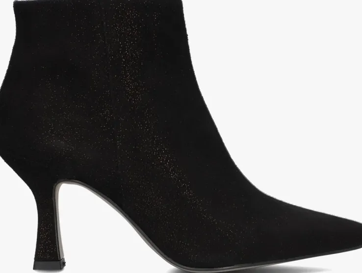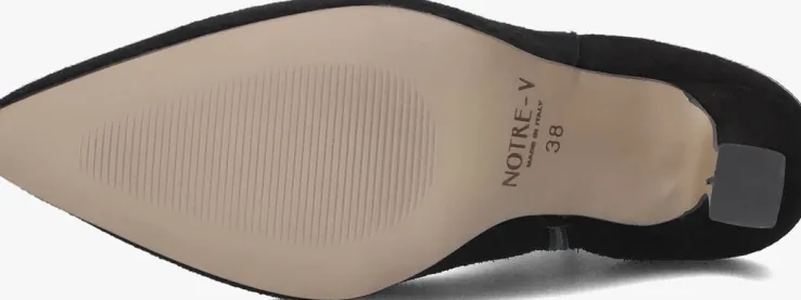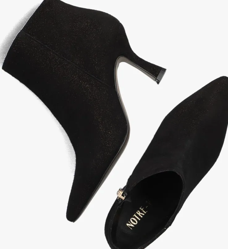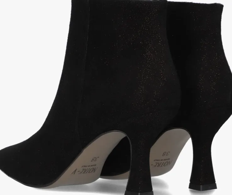 De Italiaanse ontwerpen van het merk NOTRE-V zijn er voor de verfijnde vrouw die er graag effortless chic uitziet. Dit enkellaarsje 21033 met subtiele accenten maakt jouw look compleet! Hij is gemaakt van zwart suède met bronskleurige glitters, heeft een puntige neus én een elegante kitten heel van 8 centimeter hoog. Leuke details zijn de merkstud op de achterkant van de schacht en het merkreliëf op de zilverkleurige rits. De schoen is leer gevoerd en heeft een vast voetbed met demping voor comfort. De schachthoogte is 9,5 centimeter, gemeten bij maat 38. Draag deze stijlvolle laarsjes onder een jeans of jurk en je bent helemaal klaar voor een nieuwe, mooie dag!