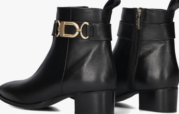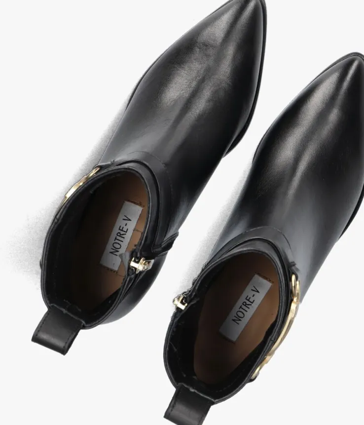 Stap stijlvol de dag in met deze elegante zwarte hoge laarzen van NOTRE-V. Gemaakt van leer en voorzien van een puntige neus, stralen deze laarzen pure klasse uit. De comfortabele textiele binnenkant en de stevige blokhak van 4 cm zorgen voor een perfecte balans tussen stijl en comfort. Ideaal voor een dag op kantoor of een avondje uit. De goudkeurige details maken het extra vrouwlijk. Combineer ze moeiteloos met een strakke jeans of een chique rok voor een verfijnde look. De rubberen zool biedt extra grip, terwijl de ritssluiting zorgt voor een gemakkelijke instap. Met de 3254 laarzen ben je altijd klaar voor elke gelegenheid.