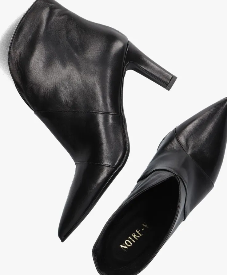 De elegante Italiaanse ontwerpen van het merk NOTRE-V zijn er voor de verfijnde vrouw die er graag effortless chic uit wil zien. De producten zijn gemaakt van luxe materialen met subtiele accenten en een knipoog naar de laatste trends.Ditzwarte enkellaarsje 38235 kenmerkt zich door het mooie leer met een spitse neus. Verder heeft dit model een stoere inkeping aan de voorzijde van de schacht, opvallend stikwerk en een bijpassende naaldhak van ruim 8 centimeter hoog.De ritssluiting aan de zijkant van de laars zorgt voor een gemakkelijke instap. Het binnenwerk van leer in combinatie met lederlook heeft een vast voetbed en voelt comfortabelaan. De schacht heeft een hoogte van 12 centimeter, gemeten bij maat 38 en de loopzool is uitgevoerd in rubber. Onder welk outfit laat jij dit laarsje mooi uitkomen?