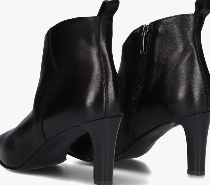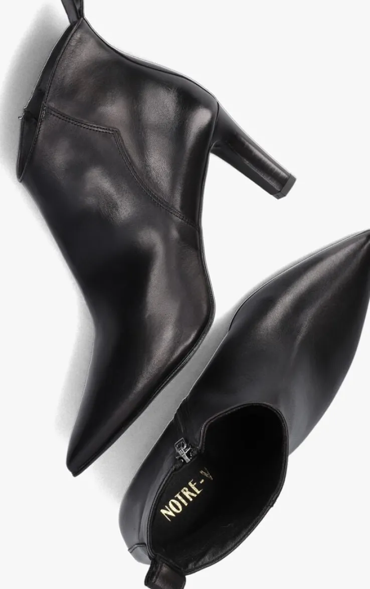De Italiaanse ontwerpen van het merk NOTRE-V zijn er voor de verfijnde vrouw die er graag effortless chic uitziet. Dit enkellaarsje 38238 met subtiele accenten maakt jouw look compleet! Hij is gemaakt van zwart leer, heeft een spitse neus én een elegante smalle hak van 7,5 centimeter hoog. Leuk detail is de aantreklus op de achterkant van de schacht en het merkreliëf op de goudkleurige rits. De schoen is leer gevoerd en heeft een vast voetbed met demping voor comfort. De schachthoogte is 11 centimeter, gemeten bij maat 38. Draag deze stijlvolle laarsjes onder een jeans of jurk en je bent helemaal klaar voor een nieuwe, mooie dag!