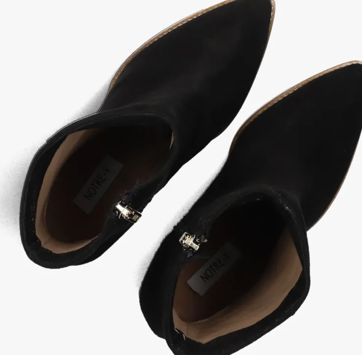Stap stijlvol de herfst en winter in met de zwarte suède biker boots van NOTRE-V. Deze enkellaarsjes, met de productnaam 46936, hebben een puntige neus en een stevige blokhak van 9 cm. De leren binnenkant en zool zorgen voor comfort. De rits maakt aan- en uittrekken eenvoudig. Combineer ze met een warme wollen jurk of een stoere skinny jeans voor een dagje shoppen of een gezellige herfstwandeling. Met een schachthoogte van 17 cm bieden ze net dat beetje extra flair aan je outfit. Perfect voor dames die houden van een edgy en toch elegante look.