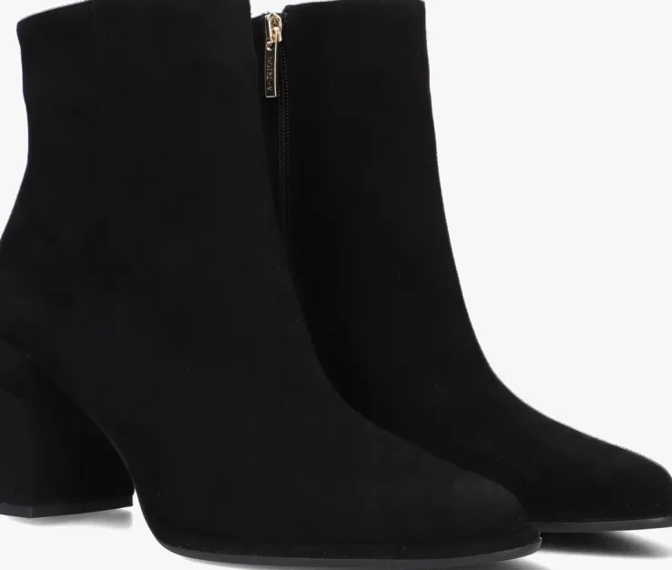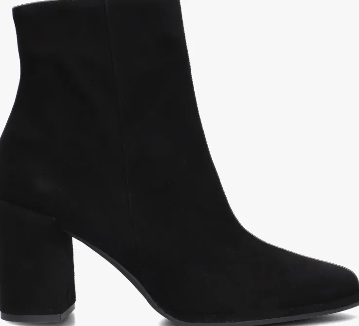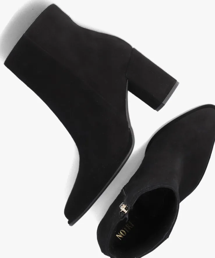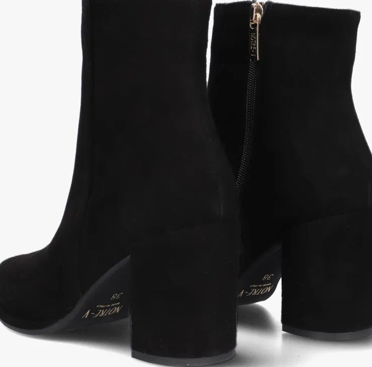 De schoenen van het merk NOTRE-V zijn tijdloos, maar met een knipoog naar de laatste trends. Deze fijne enkellaars 67034 is daar een mooi voorbeeld van. Dit model is uitgevoerd in zwart suède en heeft subtiele details die dit rustige design trendy maken, zoals de spitse neus, de beklede blokhak en de goudkleurige ritshanger met merkreliëf. De blokhak is 8 centimeter hoog en de schachthoogte is 13 centimeter, gemeten bij maat 38. Het binnenwerk is gemaakt van leatherlook ik combinatie met een vast, leer voetbed. De rubberen loopzool heeft een gripvast profiel dat zorgt voor veel stabiliteit bij iedere stap. Een trendy schoen die je makkelijk combineert!