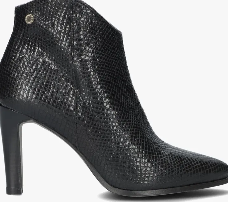 De elegante, Italiaanse ontwerpen van het merk NOTRE-V zijn er voor de verfijnde vrouw die er graag effortless chic uitziet. De producten zijn gemaakt van luxe materialen met subtiele accenten en een knipoog naar de laatste trends.Dit zwarte enkellaarsje 7433heeft een eleganteuitstraling door de slanke vormgeving en is voorzien van een afgeronde schachten een smalle hak. Het laarsje is uitgevoerd in leer met een glanzende reptielenprint en een handigerits aan de binnenkant. Het binnenwerk van zacht en soepel leer voelt comfortabel aan en heeft een vast voetbed. De hak is ruim 9centimeter hoog en de schacht heeft een hoogte van zo’n 10centimeter, gemeten bij maat 37.