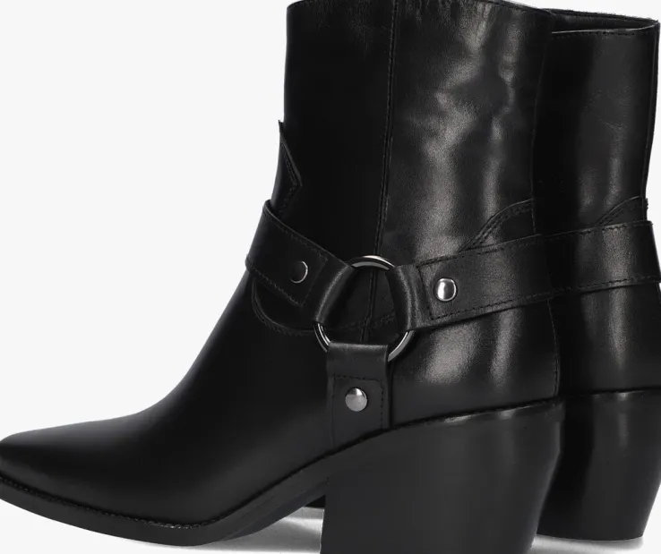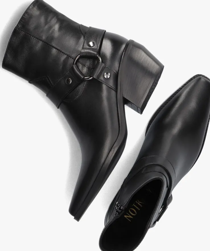 Deze enkellaars AL334 met cowboy-accenten komt uit de collectie van het mooie merk NOTRE-V. De elegante Italiaanse ontwerpen van het merk NOTRE-V zijn er voor de verfijnde vrouw die er graag effortless chic uit wil zien. De producten zijn gemaakt van luxe materialen met subtiele accenten en een knipoog naar de laatste trends.Dit model met slanke vormgeving is gemaakt van zwart leer en heeft city western details zoals een puntige neus, het patroon op de schacht en het leren bandje met zilverkleurig element om de schacht. Je trekt ‘m gemakkelijk aan dankzij de ritssluiting aan de binnenzijde. De voering is gemaakt van leer en het dempende voetbed is niet uitneembaar. De gelaagde hak heeft een hoogte van 7 centimeter en de schachthoogte is 15 centimeter. De rubberen loopzool met lijntjesprofiel zorgt voor voldoende grip, steun en stabiliteit! Combineer ‘m onder een zwierige jurk en steel de show!