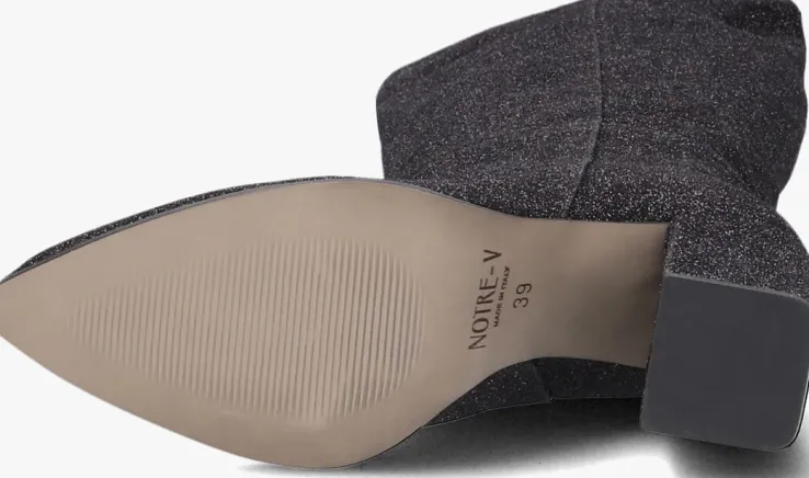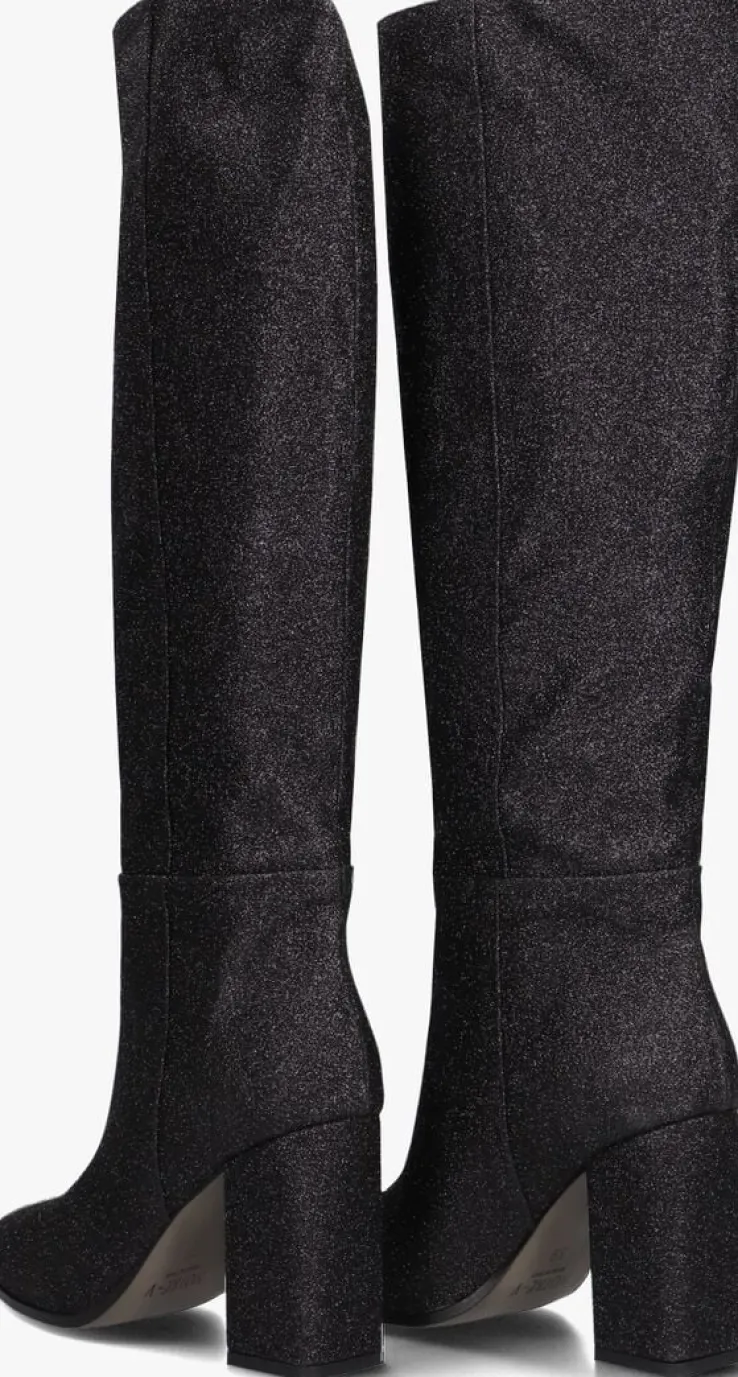 Stap in de spotlights met de X FLORINE – DOLLY DANCERS lange laarzen van NOTRE-V. Deze zwarte beauty’s zijn perfect voor een feestelijke look. Met hun puntige neus en blokhak straal je zelfverzekerdheid uit. De glitter buitenkant geeft een party vibe aan je outfit en is mooi afgewerkt met naarbinnen gestikte naden. Dankzij het comfortabele leer aan de binnenkant kun je het de hele avond volhouden. Met een hakhoogte van 10 centimeter voel je je op en top vrouwelijk. Laat jezelf zien en schitter met dit toffe model!