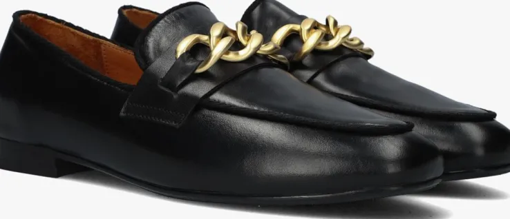 Deze loafer van het merk NOTRE-V maakt jouw outfit compleet. Dit model is gemaakt van zwart leer en heeft op de wreef een goudkleurige ketting. De binnenkant bestaat uit cognackleurig leer en heeft een zacht voetbed. Een leuk detail is de zwarte katoenen rand om de neus, tong en enkel. De gladde zool is gemaakt van rubber en heeft een gelaagd blokhakje van 1,5 centimeter hoog dat de schoen extra elegant maakt. Combineer deze loafer met je favoriete jeans of draag ze onder een leuk rokje.