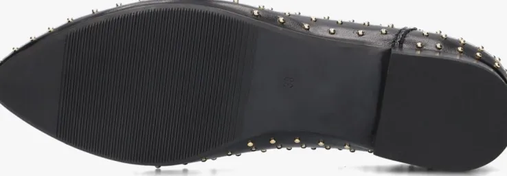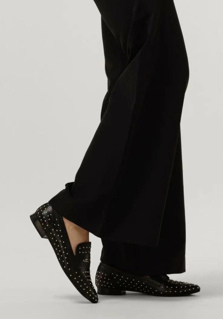 De elegante Italiaanse ontwerpen van het merk NOTRE-V zijn er voor de verfijnde vrouw die er graag effortless chic uit wil zien. De producten zijn gemaakt van luxe materialen met subtiele accenten en een knipoog naar de laatste trends. Met deze opvallende loafer 4625 maak jij jouw outfit compleet en zorg je voor een stoere touch. De buitenkant is uitgevoerd in zwart leer en heeft een mooi, stijlvol silhouet. De voering is gemaakt van leer met een vast dempend voetbed en een hielstuk van suède voor extra comfort. Deze schoen heeft een afwerking van goudkleurige studs over de gehele schoen behalve op de wreefband. De wreefband is voorzien van een uitsnijding in het leer en is opgevuld met een goudkleurig patroon. De gladde zool is gemaakt van rubber en heeft een gelaagd blokhakje van 1,5 centimeter hoog dat de schoen extra elegant maakt. Combineer deze loafer met je favoriete jeans of draag ze onder een leuk rokje.