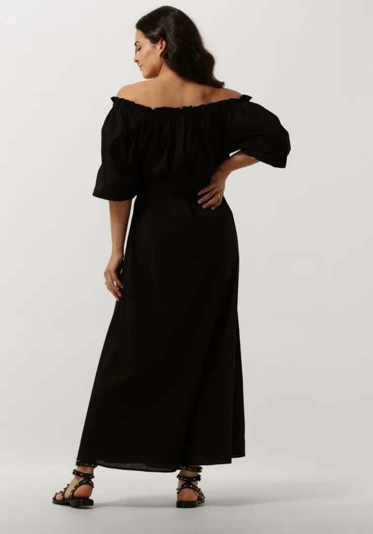 Met de NV-DANYA OFF SHOULDER DRESS van NOTRE-V ben jij helemaal on-trend! Deze zwarte maxi jurk is perfect voor een avondje uit of een zomerse dag op het strand. Combineer de jurk met een paar elegante sandalen en een statement ketting voor een chique look. Of draag hem met een spijkerjasje en sneakers voor een meer casual uitstraling. Met deze jurk straal jij gegarandeerd zelfvertrouwen uit en steel je de show waar je ook gaat. Perfect voor dames die houden van stijlvolle en comfortabele kleding.