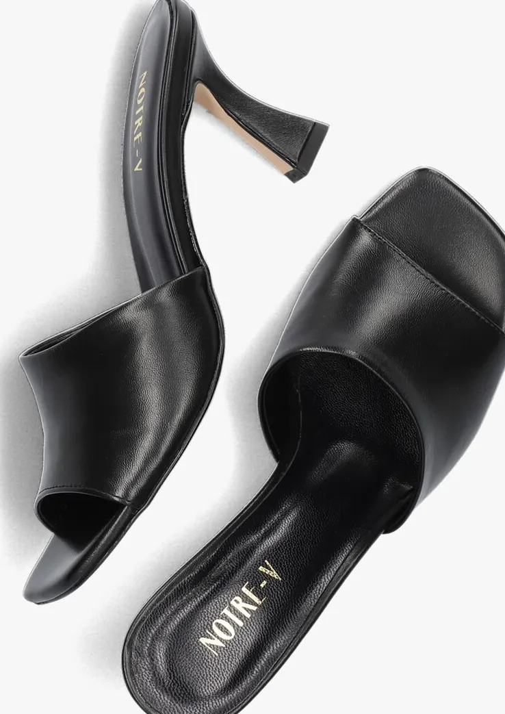 Een muiltje is deze zomer onmisbaar in je schoenenkast! Dit zwarte model 7731 bestaat uithoogwaardig kwaliteitsleer en is van het toffe merkNOTRE-V.Dit muiltje heeft een trendy carré neus, een smalle vormgeving en een brede band over de voorvoet. Het binnenwerk is van leer met eenlicht opgevulde voetbed en goudkleurige merkopdruk. De kittenheel van 8 centimeter hoog is afgewerkt met hetzelfde leer en maakt dit model helemaal af! Met het fijne maar gripvaste profiel in de loopzool ervaar je veel stabiliteit bij iedere stap.Combineer ze stijlvol met jouw lievelingsjurk of -broek!