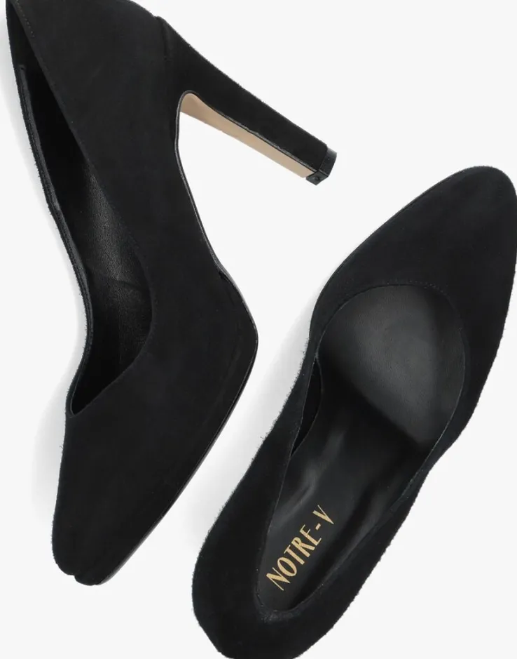 De elegante Italiaanse ontwerpen van het merk NOTRE-V zijn er voor de verfijnde vrouw die er graag effortless chic uit wil zien. Gemaakt van luxe materialen met subtiele accenten en een knipoog naar de laatste trends. Deze zwarte pump 12501 heeft een vrouwelijke look door de slanke vormgeving, de stevige naaldhak en de afgeronde neus. Dit model is uitgevoerd in hoogwaardig suède met een leren binnenvoering met een vast voetbed en een dempende schuiminzet voor optimaal comfort. De hak is bekleed met suède en heeft een hakhoogte van ruim 10 centimeter. Het perfect item om iedere look stijlvol mee af te maken!