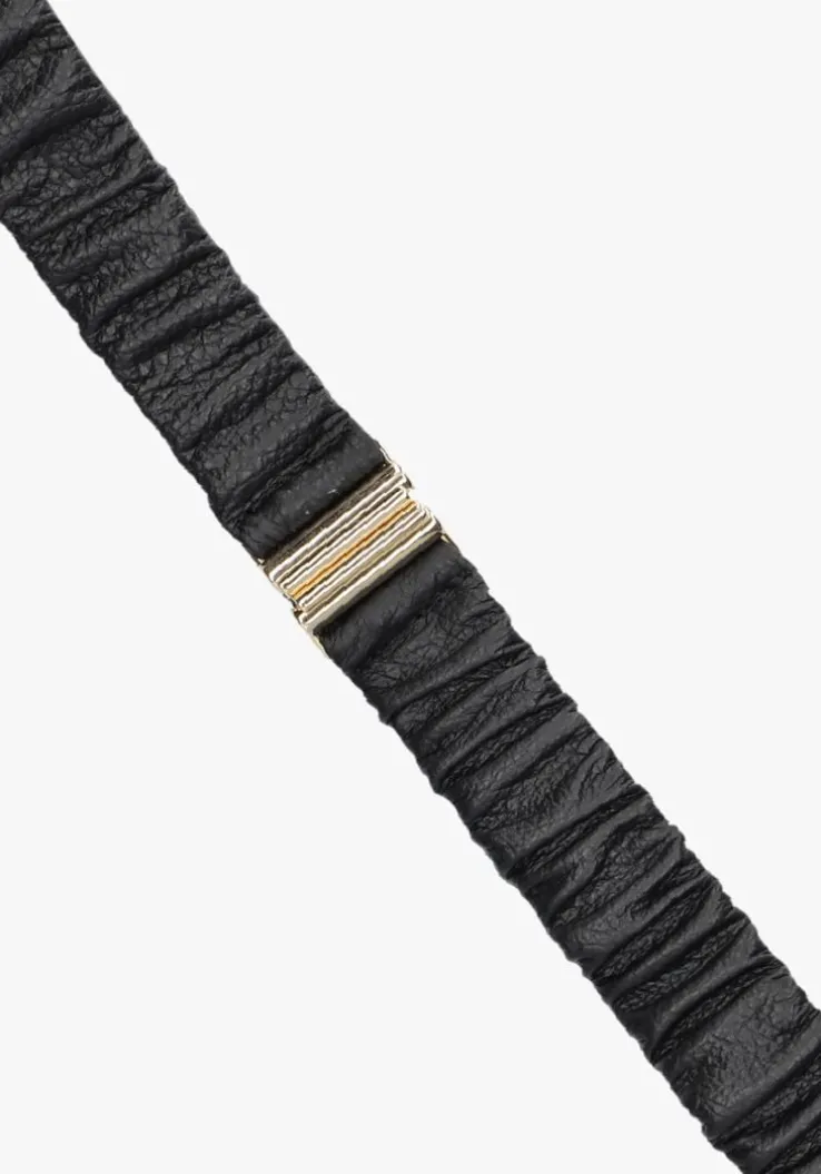 Met de zwarte riem KEESJE van het merk NOTRE-V voeg je een vleugje glamour toe aan je outfit. De riem is uitgevoerd in leer en heeft een metalen, goudkleurige sluiting. De riem is in verschillende maten verkrijgbaar en is 4,5 centimeter breed. Tip: dit item is ook erg leuk om cadeau te geven aan je moeder, vriendin, zus of buurvrouw!