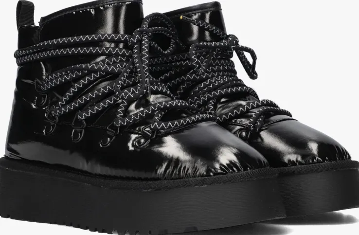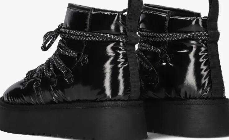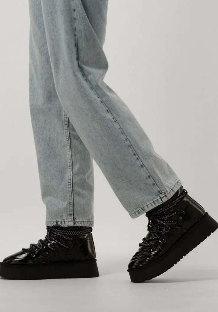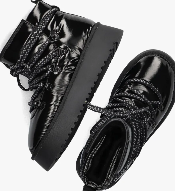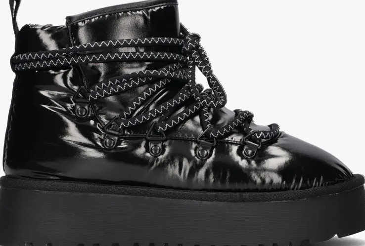 Met de FEBE snowboots van NOTRE-V ben je klaar voor de winter! Deze zwarte snowboots zijn speciaal ontworpen voor dames die de kou trotseren. De buitenkant is gemaakt van glanzend textiel en de binnenkant is gevoerd met zacht faux fur, zodat je warme voeten blijft houden. De plateauzool zorgt voor extra comfort en de rubberen zool biedt goede grip op gladde ondergronden. Extra tof aan dit model zijn de driehoekveterlusjes en de grove veters over het gehele bovenwerk. Draag de FEBE snowboots tijdens winterse wandelingen of op de skipiste. Combineer ze met een warme winterjas en een gebreide muts voor een stijlvolle winterlook!