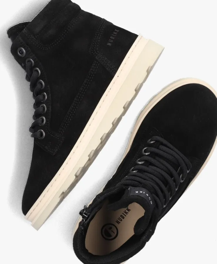 Uit de nieuwe juniorcollectie van het merk NUBIKK is deze hippe hoge sneaker JONAH DUNE JR van hoogwaardig, zwart suède. Makkelijk te combineren bij allerlei outfits en supercomfortabel voor lange schooldagen en gezellige playdates. En helemáál leuk is om ze met de hele familie te dragen voor de trendy mini-me-look. De schoen is gevoerd met ademend en zacht mesh textiel en heeft een uitneembaarvoetbed van leer. Deze stijlvolle sneaker heeft de kenmerkende NUBIKK elementen zoals het merklabel op de tong en het merkreliëf op de hiel. Opvallende details zijn de veterringen, de dubbele zoolrand en de ritssluiting aan de binnenkant van de schoen waarmee je ze razendsnel aan-en uit trekt en niet iedere keer de veters hoeft te strikken. De rubberen zool is 3 centimeterdik, is licht van gewicht, superflexibelen uiteraard gripvast voor urenlang speelplezier. Waar combineer jij ‘m bij?