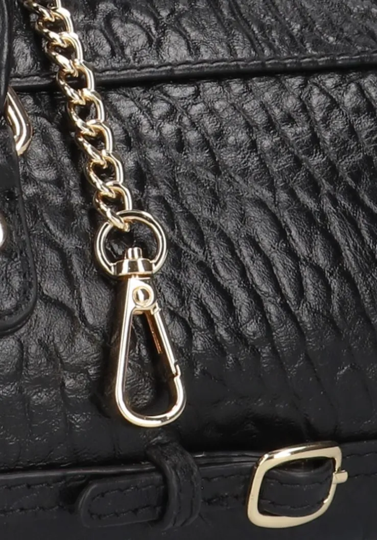 Ontdek de veelzijdigheid van de NÚNOO NORI NEW ZEALAND handtas. Deze stijlvolle zwarte tas is gemaakt van zwart leer en heeft rondom goudkleurige details. De tas bevat één compartiment en wordt afgesloten met een ritssluiting. De binnenvoering is gemaakt van textiel en biedt genoeg ruimte voor jouw belangrijke essentials. Combineer ‘m moeiteloos met een elegante jurk of een casual jeans en blazer voor een chique look. Voeg een vleugje stijl toe aan je dagelijkse avonturen met deze prachtige schoudertas.