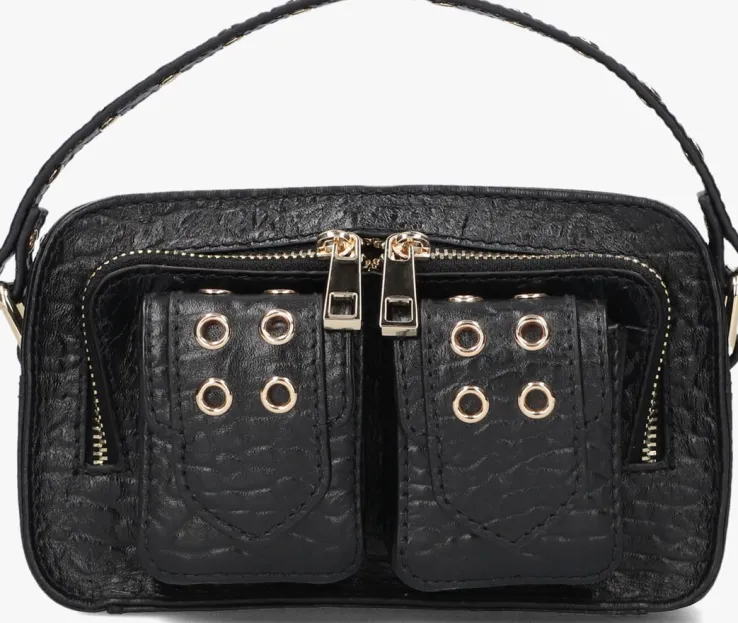 Met de HELENA EYELET schoudertas van NÚNOO maak je een statement. Deze zwarte leren tas is perfect voor dames die op zoek zijn naar een stijlvolle en trendy accessoire. De tas heeft een ruim hoofdvak met een textielen voering, waardoor je al je essentials gemakkelijk kunt meenemen. Opvallend zijn de twee vakjes op de voorzijde met een sierriem. Of je nu een dagje gaat shoppen of een avondje uit gaat, deze tas is geschikt voor elke gelegenheid. Draag de HELENA EYELET over je schouder en combineer hem met een stoere jeans en een elegant topje voor een fashionable look. Laat je creativiteit de vrije loop en maak een fashion statement met deze prachtige schoudertas.