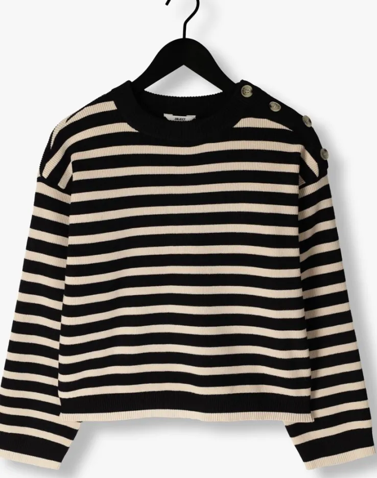 Voel je comfortabel en stijlvol met de OBJELLY LO LS KNIT PULLOVER van OBJECT. Deze zwart met ecru trui, gemaakt van zacht viscose, is perfect voor een ontspannen dag thuis of een casual wandeling in het park. Combineer met een jeans en je favoriete sneakers voor een moeiteloze look. De neutrale kleur maakt het makkelijk om te mixen en matchen met andere kledingstukken in je garderobe. Ideaal voor dames die houden van een tijdloze en veelzijdige stijl.