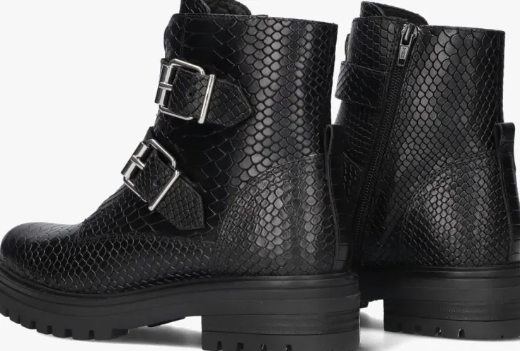 Deze stoere zwarte bikerboots LPMONK-01 komen uit de collectie van het merk OMODA. De buitenkant is gemaakt van slangenprint leer en heeft twee bandjes met zilverkleurige gespen om de schacht. Daarnaast isde schoen voorzien van een sierrits op de voorkant en een handige aantreklus op de hiel. Dankzij de ritssluiting aan de binnenzijde van de schoen trek je ‘m gemakkelijk aan en uit. De voering is gemaakt van zacht textiel en heeft een vastvoetbed van leer. Het gripvaste profiel onder de rubberen zool zorgt voor voldoende grip, stabiliteit en steun. Onder de voorvoet is de zool 2,5 centimeter hoog met een blokhak van 4 centimeter. Trek deze stoere schoen aan onder een jeans of juist onder een jurkje, het kan allemaal!
