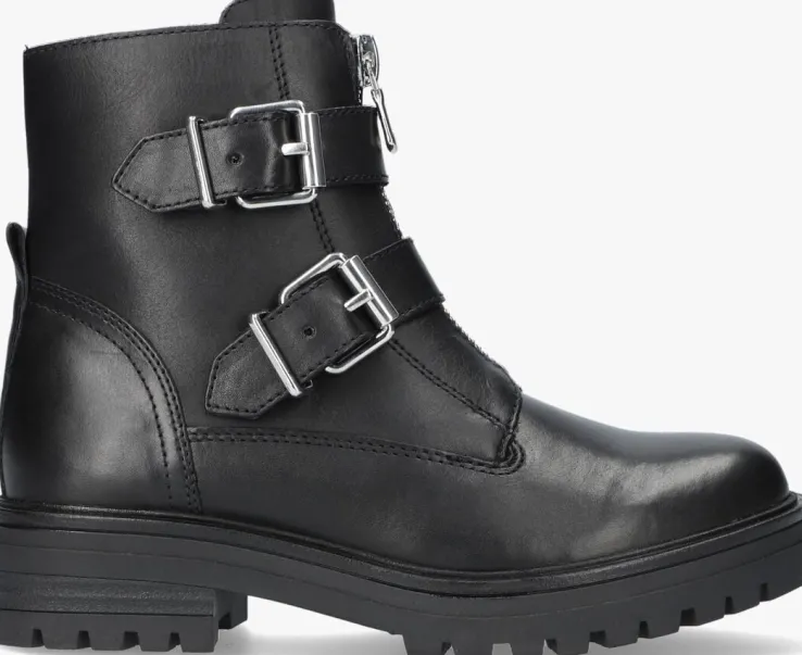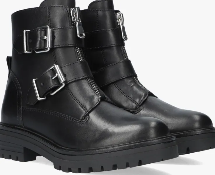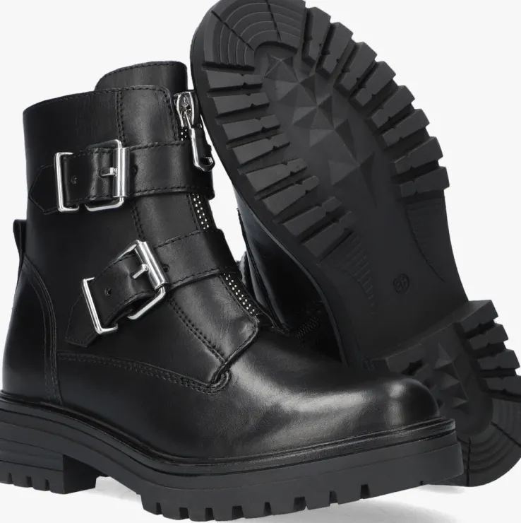 Deze stoere zwarte bikerboots LPMONK-01 komen uit de collectie van het merk OMODA. De buitenkant is gemaakt van gladleer en heeft twee bandjes met zilverkleurige gespen om de schacht. Daarnaast isde schoen voorzien van een sierrits op de voorkant en een handige aantreklus van leer op de hiel. Dankzij de ritssluiting aan de binnenzijde van de schoen trek je ‘m gemakkelijk aan en uit. De voering is gemaakt van zacht textiel en heeft een vastvoetbed van leer. Het gripvaste profiel onder de rubberen zool zorgt voor voldoende grip, stabiliteit en steun. Onder de voorvoet is de zool 2,5 centimeter hoog met een blokhak van 4 centimeter. Trek deze stoere schoen aan onder een jeans of juist onder een jurkje, het kan allemaal!