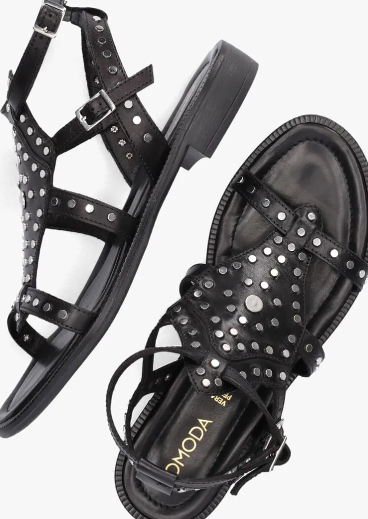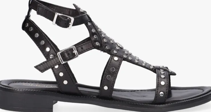 Deze zwarte sandalen 120104 komen uit de collectie van het eigen OMODA merk. Een fijn model met een stoere touch, gemaakt van hoogwaardige materialen en veel comfort. De sandaal heeft een stoer uiterlijk gekregen door de metalen platte ronde studs all-over. Over de voorvoet loopt een band die verbonden is met een ruiten leren paneel met decoratieve uitsnijdingen die over de wreef loopt. Het binnenwerk is een combinatie van zacht leer en is voorzien van een vast voetbed met een lichte voering voor extra loopcomfort. Je trekt de sandaal gemakkelijk aan en uit dankzij de twee zilverkleurige gespen aan de bandjes rondom de enkel. De flexibele rubberen zool heeft een rubberen loopzool met fijn profiel en is afgewerkt met een laag hakje van zo’n 2 centimeter. Draag deze stoere sandaal bij een casual jeans of juist onder een rokje of jurkje, waar kies jij voor?