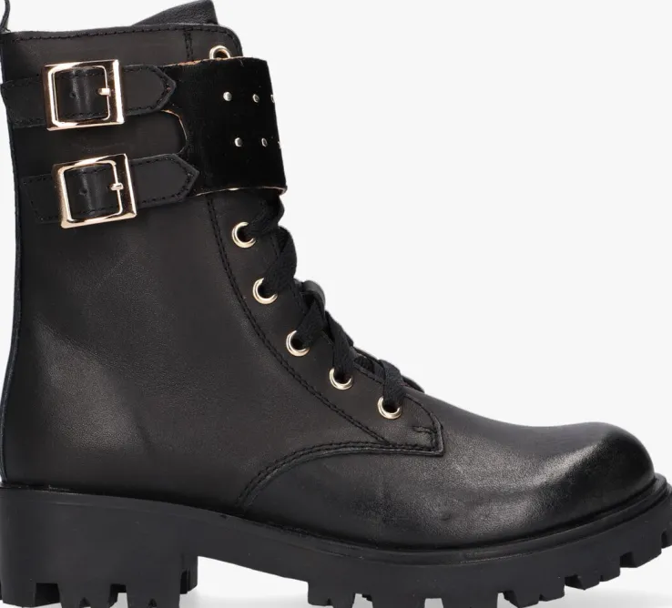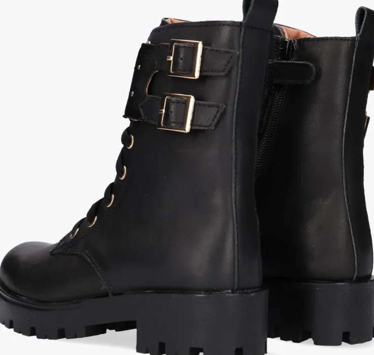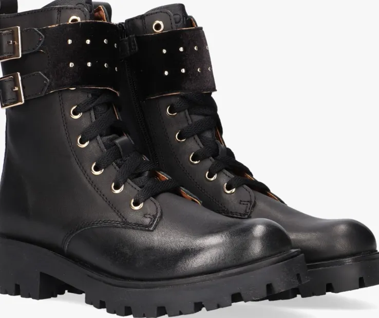 Met deze zwarte veterbootsOM121793 van het eigen merk OMODA ben jij helemaal klaar om de dag te beginnen. De buitenkant is gemaakt van zwart glad leer met goudkleurige veterringen en een bandje om de schacht van zwart velvet die is afgewerkt met ronde bollstuds en goudkleurige gespjes voor die ultieme look. Het binnenwerk heeft een leren voering met een uitneembaar, dempend voetbed. Dankzij de ritssluiting aan de binnenzijde van de boot in combinatie met de aantreklus op de schacht trek je ‘m gemakkelijk aan en uit en hoef je niet iedere keer de veters te strikken. De grove rubberen zool zorgt ervoor dat de schoen licht van gewicht is en je een goede en stevige grip hebt voor tijdens het spelen. Draag ze onder een rokje of jurk voor een stoere look.