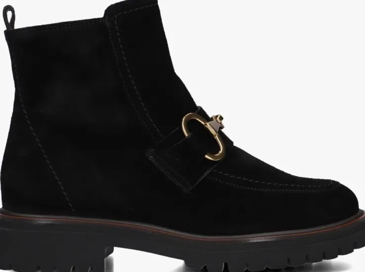Stap stijlvol de dag in met de zwarte enkelboots 8024 van PAUL GREEN. Gemaakt van hoogwaardig suède, bieden ze zowel comfort als een chique uitstraling. Het bovenwerk is afgewerkt met fraai stikwerk, een goudkleurig element en een aantreklus. Je trekt dit model razendsnel dankzij de ritssluiting aan de binnenzijde. De grove zool maakt dit model net wat stoerder.