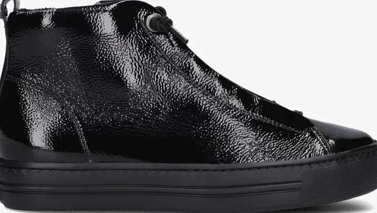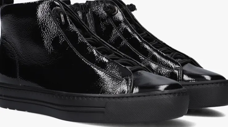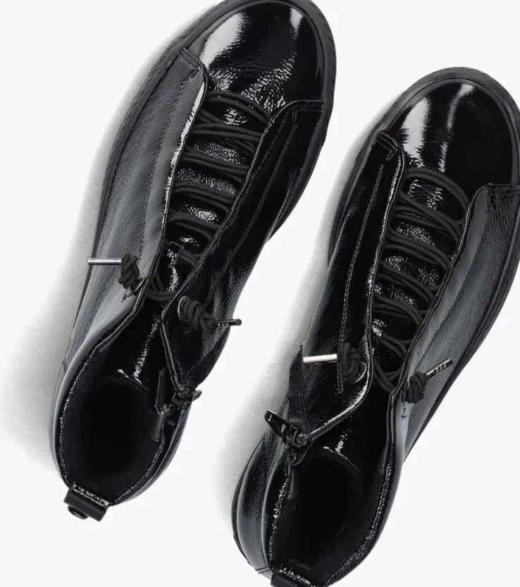 Stap stijlvol de dag door met deze zwarte hoge sneakers 5283 van PAUL GREEN. Gemaakt van leer, bieden ze niet alleen een trendy uitstraling, maar ook luxe door de details, zoals de streep in de zool, de veterringen, de merkstud op de hiel en het merkembleem op de tong. Met de ritssluiting zijn ze gemakkelijk aan en uit te trekken en de subtiele veters maken dit model helemaal af! De rubberen zool zorgt voor comfort en grip. Combineer deze sneakers met een stoere jeans en een casual shirt voor een trendy look. Of draag ze onder een jurk voor een edgy twist. Met deze sneakers ben je klaar voor elke gelegenheid. Ontdek nu de veelzijdigheid van de sneakers en maak een statement in stijl!