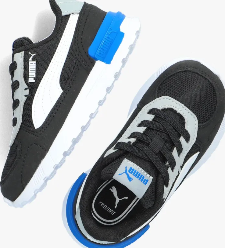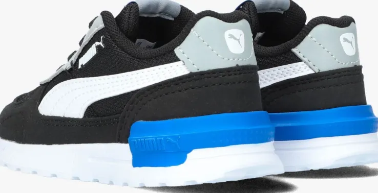 Deze zwartelage sneakeris van het merk PUMAen heeft een levendig design met veelzijdige panelen.Je kunt ‘m overal bij dragen en hij zit superlekker! Dit model is gemaakt van zwartgebreid textiel met grijze suèdelook overlays. Op de zijkant bevindt zich een wit vensterlogo, de tong is gesierd met een rubberen merkopdruk. De hiel is extra verstevigd met een sterk blauw hielstuk. Het binnenwerk is van meshen heeft een uitneembaar voetbed voor optimaal comfort. De witte rubberen zool heeft een geribbeld profiel.