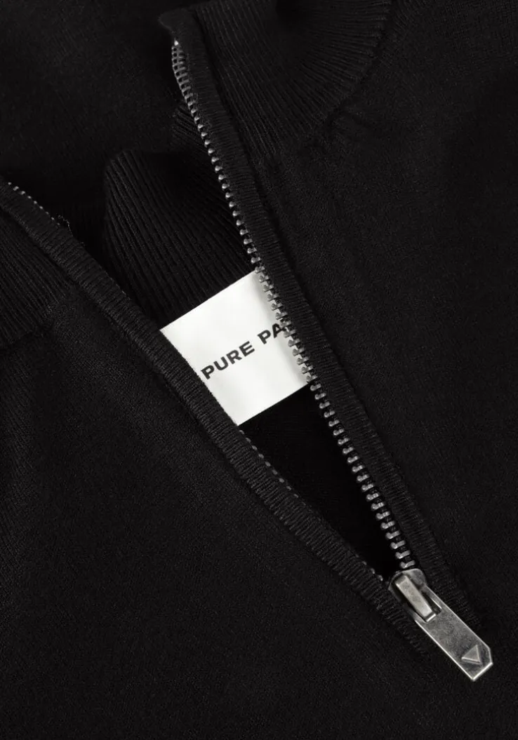 Upgrade je garderobe met de ESSENTIAL KNIT HALFZIP SWEATER van PURE PATH. Deze zwarte trui met zip is perfect voor heren die stijl en comfort willen combineren. Ideaal voor een casual dag op kantoor of een ontspannen weekendwandeling. De halfzip zorgt voor een moderne twist en maakt het makkelijk om de trui aan en uit te trekken. Combineer met een nette chino voor een verfijnde look of draag met je favoriete jeans voor een meer relaxte outfit.