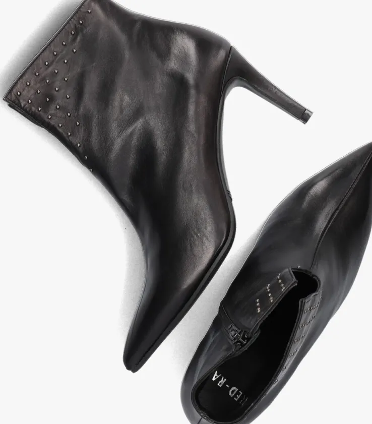 Ontdek deze perfecte zwarte enkellaarzen 78580 voor dames met een trendy twist! Deze leren enkellaarzen met puntige neus, smalle vormgeving en naaldhak zijn dé must-have voor fashionista’s die willen stralen. De glanzende, metallic afwerking geven deze laarzen een trendy uitstraling. Met de beklede hak van 8 centimeter zorgen ze voor een elegante look. De schacht met uitsnijding aan de voorzijde is 13 centimeter en maakt ze ideaal om te combineren met een trendy jurkje of een stoere jeans. Je trekt ‘m gemakkelijk aan en uit door de ritssluiting aan de binnenzijde. Dankzij de comfortabele rubberen zool kun je de hele dag stijlvol rondlopen. Deze enkellaarzen van RED-RAG zijn de perfecte aanvulling op jouw fashionable outfit!
