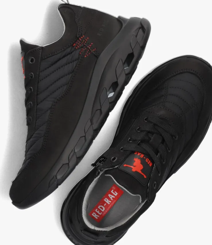 Het eigenwijze Nederlandse merk RED-RAG ontwerpt schoenen voor kinderen die weten wat ze willen en stoer en onderzoekend in het leven staan. De schoenen worden ontworpen en met de handgemaakt door vakmensen in Italië en Portugal. Met oog voor detail en gebruik van hoogwaardige materialen weten ze je keer op keer te verrassen met unieke items. Deze opvallende zwarte sneaker 13801 is uitgevoerd in nubuckleer in combinatie met gewatteerd textiel. Voor een super comfortabel gevoel is de enkelkraag en tong gevoerd waardoor hij goed aansluit en extra lekker zit. Je kleintje trekt dit model razendsnel aan door de ritssluiting naast de veterklep in combinatie met het aantreklusje op de hiel. De tong is gesierd met een rubber merkembleem en de zijkant is voorzien van een rood stiksel. De binnenkant is gevoerd met soepel leer en het dempende voetbed is uitneembaar. De rubberen zool heeft twee open stukken onder de hiel en beschikt over een gripvast profiel voor al je avonturen.
