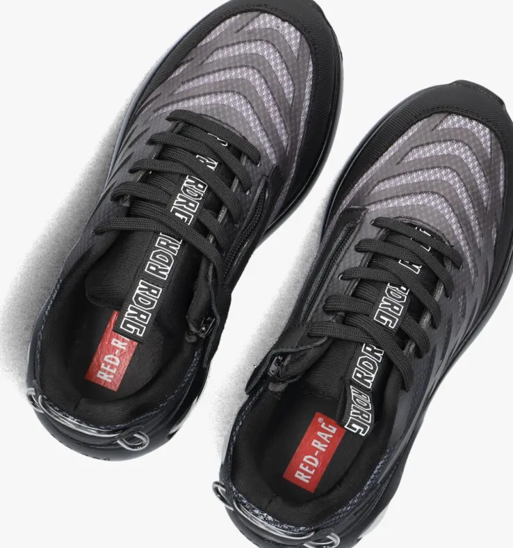 Maak kennis met de stoere lage sneakers 15823 van RED-RAG. Deze zwarte sneakers met sportieve uitstraling perfect voor jongens die houden van een sportieve en trendy look. Opvallend zijn de rubberen lijnen op het bovenwerk, het transparante luchtkussen in de zool en het rubberen aantreklusje op de hiel. Ook is de tong voorzien van een textielen lus, voorzien van witte logo’s. Ideaal voor een potje voetbal op het plein of een middagje chillen met vrienden. Combineer ze met een coole jeans en een casual T-shirt voor een nonchalante outfit. Of draag ze onder een stoere cargo broek en een hoodie voor een urban vibe.