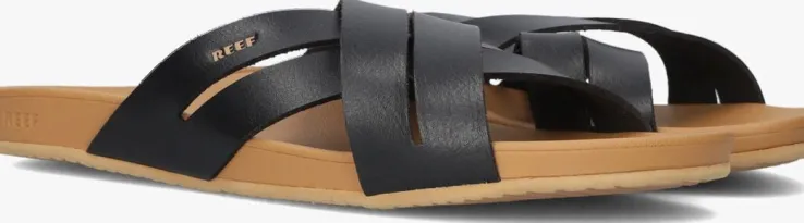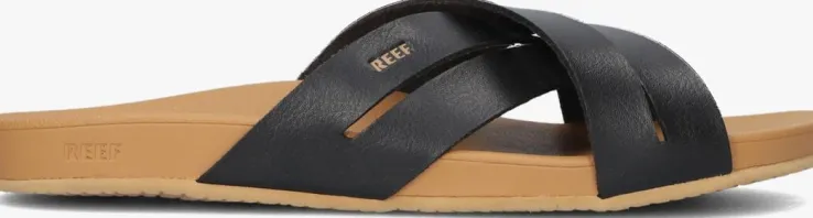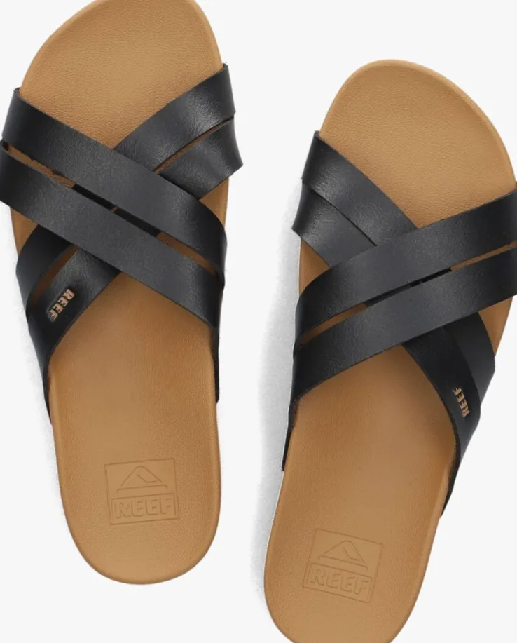 Uit de collectie van het merk Reef is deze buitengewoon comfortabele slipper CUSHION SPRING BLOOM. Dit zwartemodel heefteen lederlookgekruisd bovenwerk en is gesierd met een reliëf merkopdruk.Het binnenwerk heeft een textiel voering en het licht voorgevormd voetbed is gemaakt van rubber met een hoge demping en een reliëf merkopdruk aan de hiel.De supersoepele zoolis voorzien van een gripvast profielvoor veel grip en stabiliteit bij iedere stap.