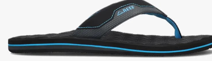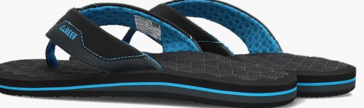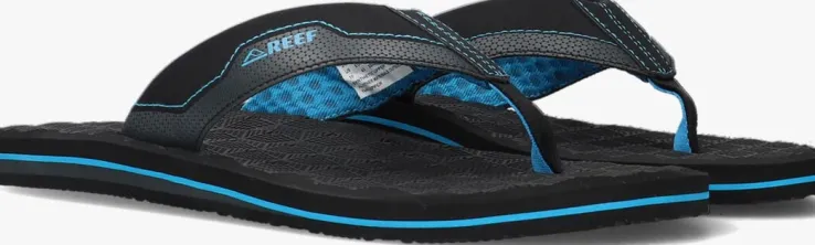 Uit de collectie van het merk Reef is deze comfortabele slipper THE RIPPER. Dit zwarte met blauwe model heeft een anatomische vormgeving voor optimaal comfort tijdens ieder avontuur.De band vanleatherlook is voorzien van een print en heeft merkemblemen aan de zijkant. De slipper is textiel gevoerd en het rubberen voetbed heeft anatomische vormgeving. De rubberen buitenzool biedtmaximale beweging en stabiliteit.
