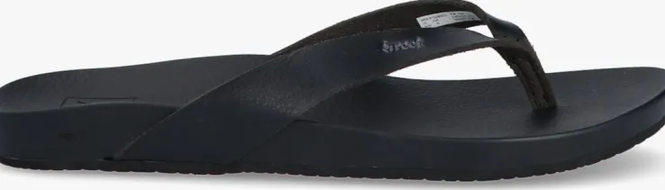 Uit de collectie van het merk Reef is deze uitzonderlijk comfortabele slipper CUSHION COURT. Dit zwarte model heeft een schokabsorberend, gekussend bounce-voetbedmet anatomische vormgeving voor optimaal comfort tijdens ieder avontuur.De taps toelopende wreefband van veganistisch leer is voorzien vaneen reliëf merkopdruk eneen zachte textielvoering. De gevormde rubberen buitenzool met flex-groeven biedtmaximale beweging en stabiliteit.De ideale slipper voor ieder avontuur!