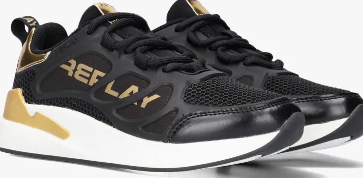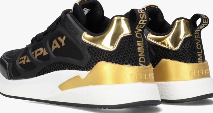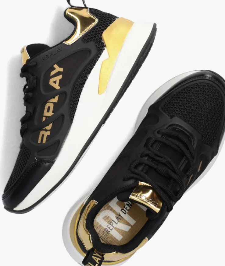 Nu kunnen de jongste onder ons ook meedoen met de dadsneaker trend! Dit veelzijdige lage sneaker model MAZE JR komt uit de collectie van het merk REPLAY. De neus en zijkant van dit model zijn uitgevoerd in zwart glanzend textiel met een rubberen mesh inzet eroverheen en een opvallende goudkleurige inzet met een merkopdruk en merkreliëf op de zijkant van de schoen. Opvallende details zijn de zwarte veterlusjes, het goudlkeurige merklabel op de tong, de goudkleurige hielstabilisator met merkreliëf voor een goede ondersteuning aan de hiel, een hielcap van goudkleurig lederlook en een textiele aantreklus met merkopdruk achter op de hiel. Deze detailsgeven deze sneaker een enorme fashion boost en ze zitten nog eens heerlijk! De voering is gemaakt van mesh textiel en heeft een vast voetbed. De chunky zool heeft eengripvast profiel en is helemaal volgens de laatste trends. Maak met dit item een statement en show jouw unieke stijl!