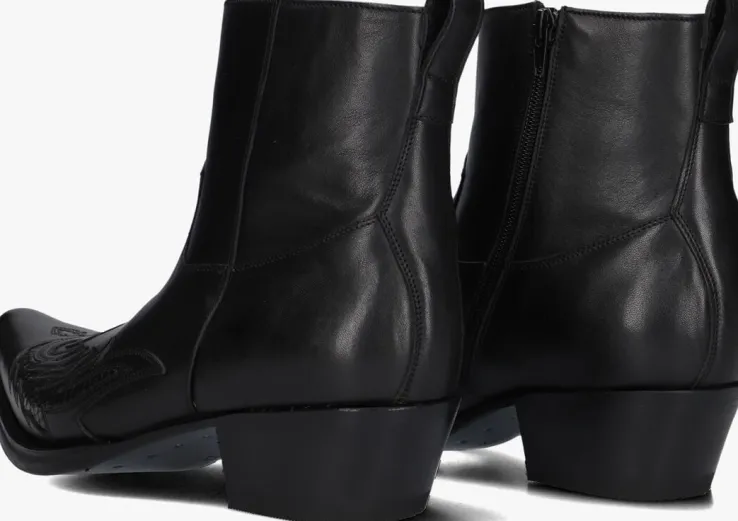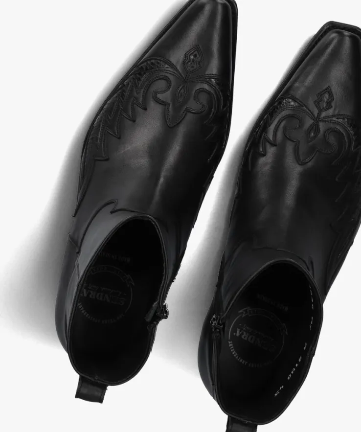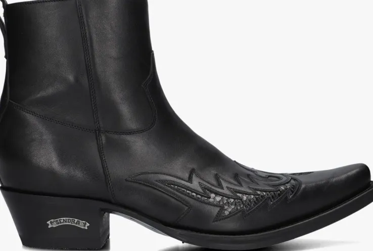 Cowboylaarzen zijn niet meer weg te denken uit het modebeeld. Zo ook dit fraaie exemplaar 12185P van het merk Sendra!Deze zwarte leren cowboylaars beschikt over een stoer vlammenpatroon die op het voorpand gestikt is, een Cuban hak en een spit toelopende neus met een trendy carré afwerking. De laars heeft eenritssluiting eneen treklus op de achterkant om het aantrekken te vergemakkelijken. De leren zool is volgens de Goodyear-methode aan het bovenwerk bevestigd. De gelaagde hak met rubberen loopvlak heeft een hoogte van 5 centimeter en de schachthoogte is 14centimeter, gemeten bij maat 42.De laars is leergevoerd met een vast voetbed.Durf jij ze aan?