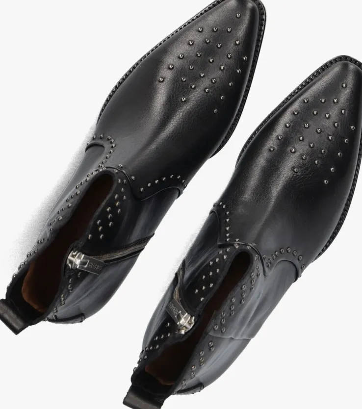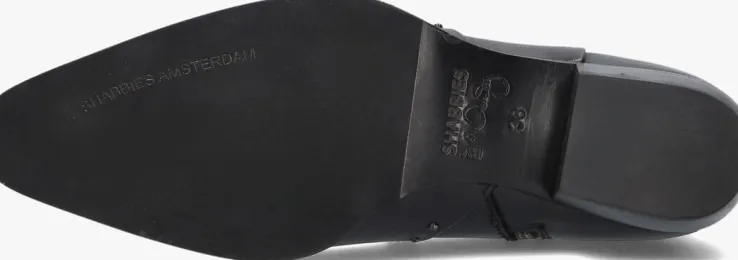 Deze toffe enkellaars 23M003 komt uit de collectie van het merk SHABBIES in samenwerking met WENDY VAN DIJK. Dit model is gemaakt van zwart, hoogwaardig leer en heeft een slanke vormgeving, bollstuds op de voorvoet, wreef en enkelkraag, een merklabel op de hiel en een leren aantreklus. Je trekt dit model gemakkelijk aan dankzij de ritssluiting aan de binnenzijde. Ook heeft dit model echte cowboy accenten, dit komt door de puntige neus, de afgeronde schacht en de gelaagde blokhak van ruim 3,5 centimeter hoogte. Je ervaart een heerlijk comfort, want de voering bestaat uit leer en het voetbed is uitneembaar. De leren zool heeft een rubberen afwerking aan de voorvoet voor voldoende grip en de blokhak is afgewerkt met een kunststof haktip voor uitstekende stabiliteit. Draag dit laarsje onder een toffe jeans of stoer jurkje en steel de show!