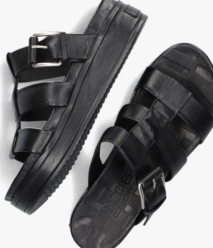 Het streven van het Amsterdamse merk SHABBIES is dat jij je zelfverzekerd en goed voelt met iedere stap die je zet. Dat doen ze door toffe schoenen te maken van mooie materialen met een hoge kwaliteit, een uniek design en een vrouwelijketouch. Deze zwarte platformslipper 170020404 SHS1406 is een echte musthave voor dit seizoen! De slipper is voorzien van smalle banden van soepel leer over de voorvoet en wreef en heeft een metalen gesp. Gecombineerd met de flinke plateauzool van 4 centimeter dik geeft dit model jou een supertrendy uitstraling. Het voetbed en de voering zijn van leer en op het voetbed is een merkreliëf te vinden. Match deze sandaal met een mooie jurk en je bent klaar voor het zomerseizoen!