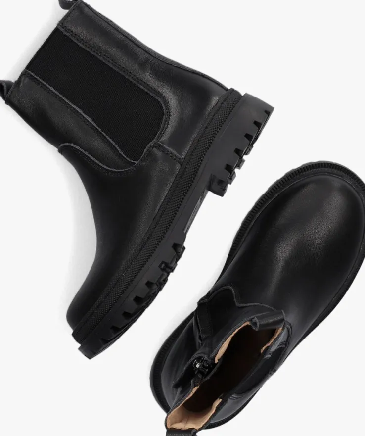 Dee chelsea boot van het merk SHOESME is een musthave voor jouw kleintje! De boot is gemaakt van zwart glanzend leer en heeft aan de buitenzijde een elastieken band. Aan de binnenzijde zit een rissluiting voor het gemakkelijk aan en uit trekken. Een leuk detail zijn de twee aantreklussen aan de bovenkant. De binnenkant is gemaakt van beige leer en heeft een uitneembaar voetbed. De zwarte rubberen zool is subtiel afgewerkt en geeft veel comfort en stabiliteit. Combineer ‘m onder een jurkje of stoere jeans!