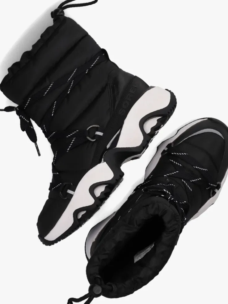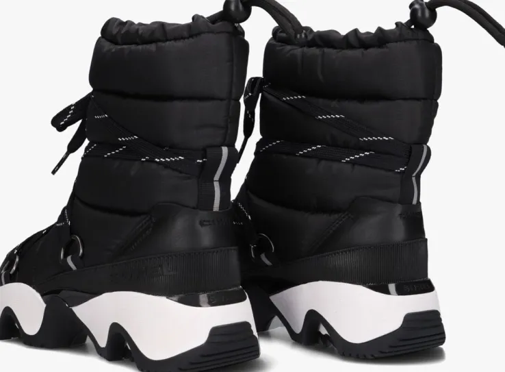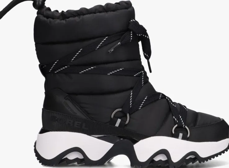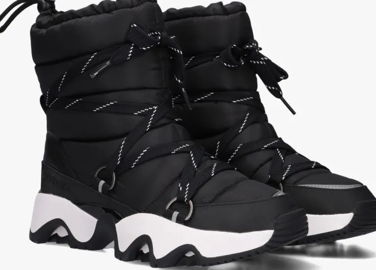 Stap stijlvol en comfortabel de winter in met de KINETIC IMPACT NXT BOOT van SOREL. Deze zwarte snowboots voor dames zijn gemaakt van nylon textiel en heeft witte accenten. Met de chunky zool loop je moeiteloos door de sneeuw. De schachthoogte van de laarzen zijn 14 centimeter. Sluit de boots stevig aan met de vetersluiting die rond de schoen loopt. De bovenzijde is afgewerkt met een trekkoordje, zodat je voeten goed beschermd blijven. De rubberen zool zorgt voor goede grip op gladde ondergronden. Combineer deze trendy snowboots met een warme winterjas en een gebreide muts voor een complete winterlook. Ga op avontuur in de sneeuw of maak een winterse wandeling in stijl!