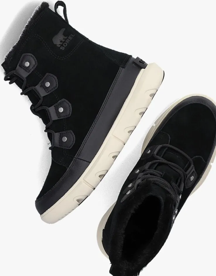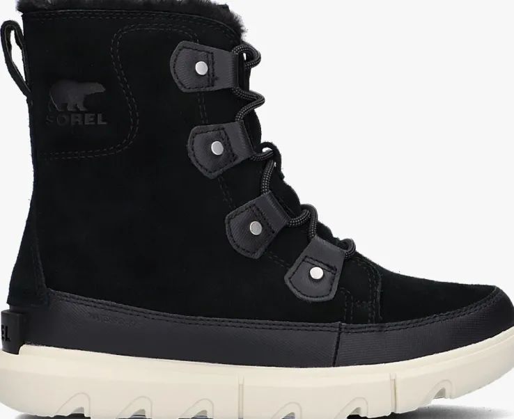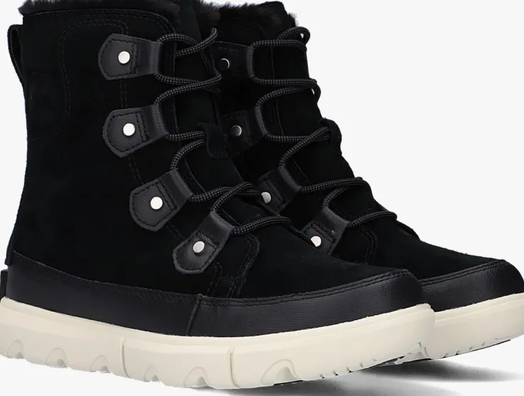 Blijf warm en droog in weer en wind met deze waterproof enkelboots SOREL EXPLORER II JOAN FAUX FUR WP van het merk Sorel. Deze zwarte boots zijn uitgevoerd in waterdicht suède en heeft een rand van rubber met wafelprofiel. De boot heeft stoere details, zoals de ronde veters, de grove veterlusjes, het merkembleem op de zijkant en het rubberen merkreliëf op de achterkant zool. De sportieve, witte zool met grof profiel biedt veel grip bij het wandelen door de modder en andere omstandigheden. Gevoerd met een faux fur enkelkraag en heerlijk zacht en warm textiel. Het comfortabele voetbed is uitneembaar en de schachthoogte is 16 centimeter.