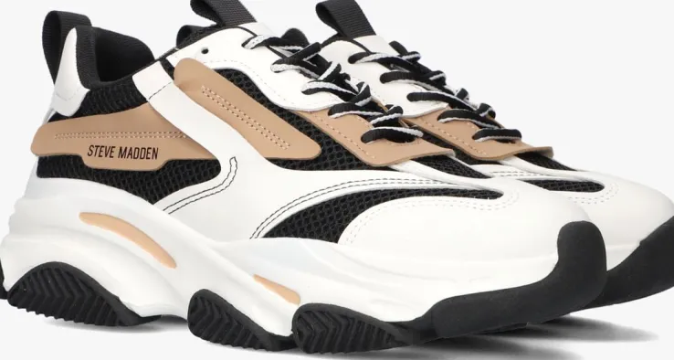 Deze lage sneaker JPOSSESSION met sportief uiterlijk komt uit de collectie van het merk STEVE MADDEN. Dit model is gemaakt van zwart mesh textiel in combinatie met leatherlook panelen in het wit en bruin. De zijkant is voorzien van een zwart merkembleem en de twee aantreklussen van textiel zijn te vinden op de tong en hiel. De voering is gemaakt van textiel en het voetbed is uitneembaar. De rubberen zool heeft een grof profiel en zorgt voor uitstekende stabiliteit de hele dag door!