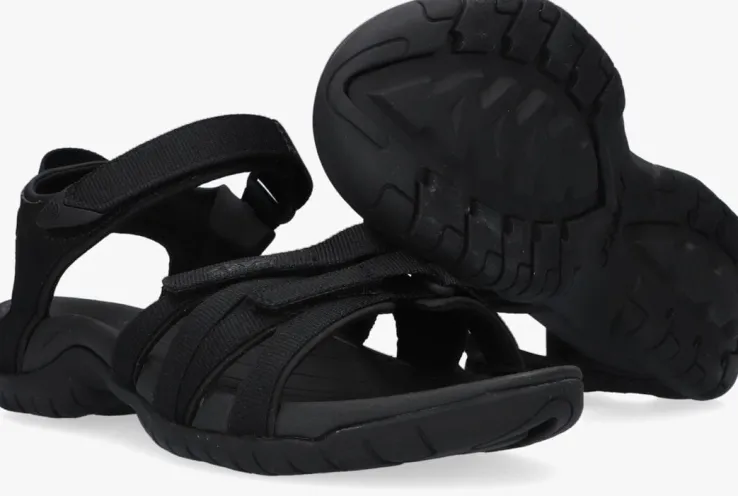 Dit modelTIRRA van het merk TEVA is ontworpen om vrouwen meer comfort, stijl en functionaliteit te bieden. Deze gestroomlijnde zwartesandaal heeft speelse bandjes aan de voeten zijn gemaakt van duurzaam polyester. Dankzij de klittenbandsluiting op de wreef stel je ‘m eenvoudig af en ervaar je veel gemak bij het aan- en uittrekken. Het zachte voetbed van microvezel zorgt voor een comfortabel gevoel en de rubberen buitenzool met grof profiel geeft de grip en steun die jij nodig hebt.
