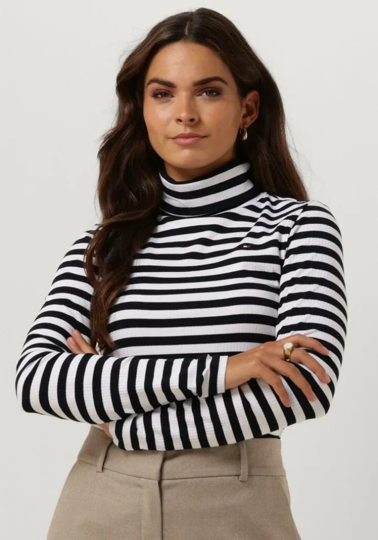 zwarte tommy hilfiger coltrui slim 5×2 rib roll-nk ls