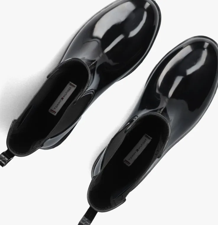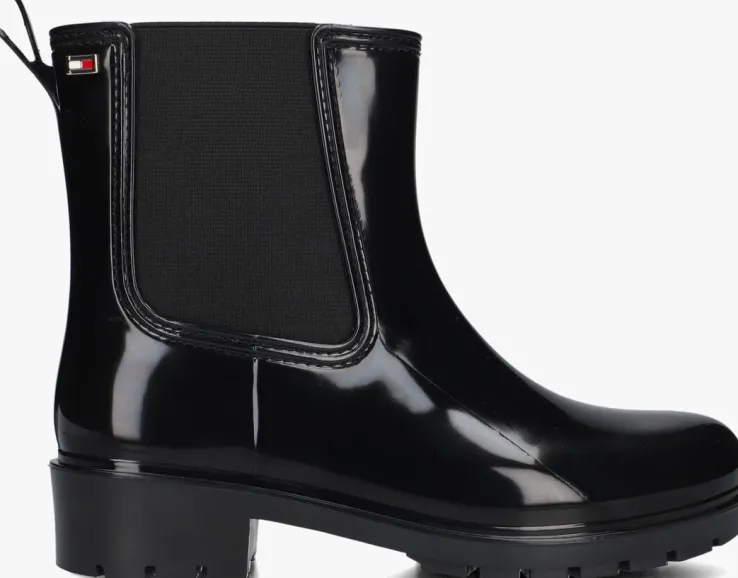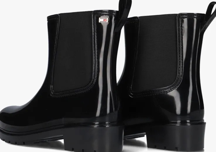 Stap stijlvol door de regen met de zwarte FLAG RAINBOOT van TOMMY HILFIGER. Deze elegante regenlaarzen houden je voeten droog tijdens een wandeling in het park of een dagje shoppen in de stad. De rubberen laars heeft een glanzende lak laag met aan de zijkanten een elastische inzet voor een handige aan en uittrek. De binnenkant is van textiel en een zool van rubber. Het grof gekartelde profiel zorgt voor een gripvast ondergrond en ben je klaar voor je dagelijkse activiteiten. Combineer ze moeiteloos met een trendy trenchcoat of een casual jeans voor een chique, maar praktische look. De subtiele vlagdetails geven een speelse twist aan je outfit, terwijl het comfortabele ontwerp zorgt voor een fijne pasvorm. Perfect voor dames die mode en functionaliteit willen combineren, ongeacht het weer.