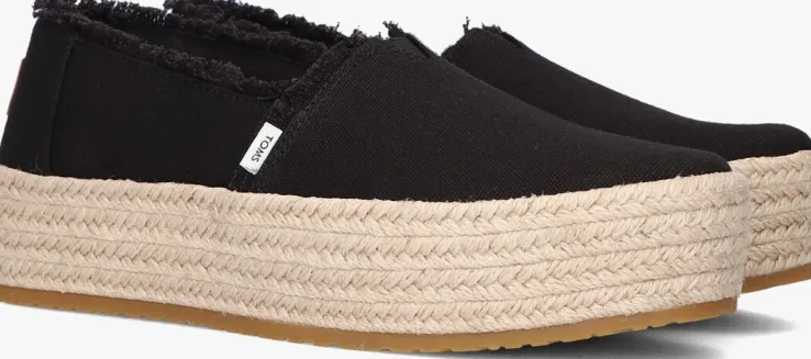 Het zonnetje schijnt, espadrilles aan je voeten, terrasje pakken, drankje erbij…laat die warme zomerdagen maar komen! Deze zwarte espadrilles VALENCIA met een jute, gevlochten plateauzool van TOMS geven je in ieder geval de perfecte zomerse look. Het elastische V’tje op de wreef zorgt voor een goede pasvorm en een gemakkelijke instap. Extra tof is het kartelrandje rondom de enkel. De schoen is gevoerd met canvas en heeft een uitneembaarOrtholite voetbed die je extra comfort geeft.Het merkembleem is te vinden aan de zijkant van de schoen en de hiel is voorzien van een bruin merklabel. De plateau zool is maar liefst 4 centimeter hoog en heeft een rubberen loopzool met grof profiel voor veel grip tijdens al je zomerse wandelingen over de boulevard of door de stad. En het allermooiste: voor elk paar schoenen dat je koopt, geeft Toms een paar nieuwe schoenen aan een kind in nood, One for One®.