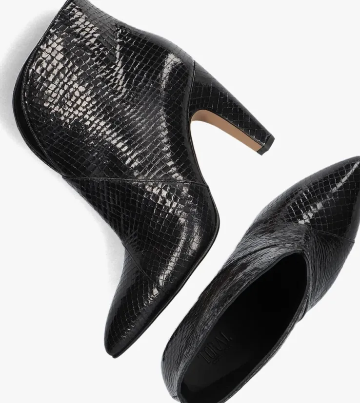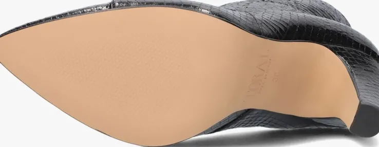 Ben je op zoek naar unieke laarsjes met een vrouwelijke touch? En wil je dat ze ook nog eens lekker comfortabel lopen? Dan is dit model een hele goede kandidaat om aan jouw schoenengarderobe toe te voegen! Deze zwarte enkellaars van het merk TORAL kenmerkt zich door de mooie accenten zoals de spitse neus en de naaldhak. Ook de vorm van de schacht is uniek doordat hij aan de voorzijde iets lager is en hem een nette uitstraling geeft. Het bovenwerk bestaat uit hoogwaardig leer met structuur en dit model heeft een binnenvoering van leer en een vast voetbed met dempende schuimlaag. De zool is van rubber en heeft een fijn profiel wat samen met de kunststof haktip voor een goede grip zorgt. De hak is bijna 10 centimeter hoog en de schacht heeft een hoogte van 11 centimeter. Combineer ‘m elegant met jouw lievelingsjurk!