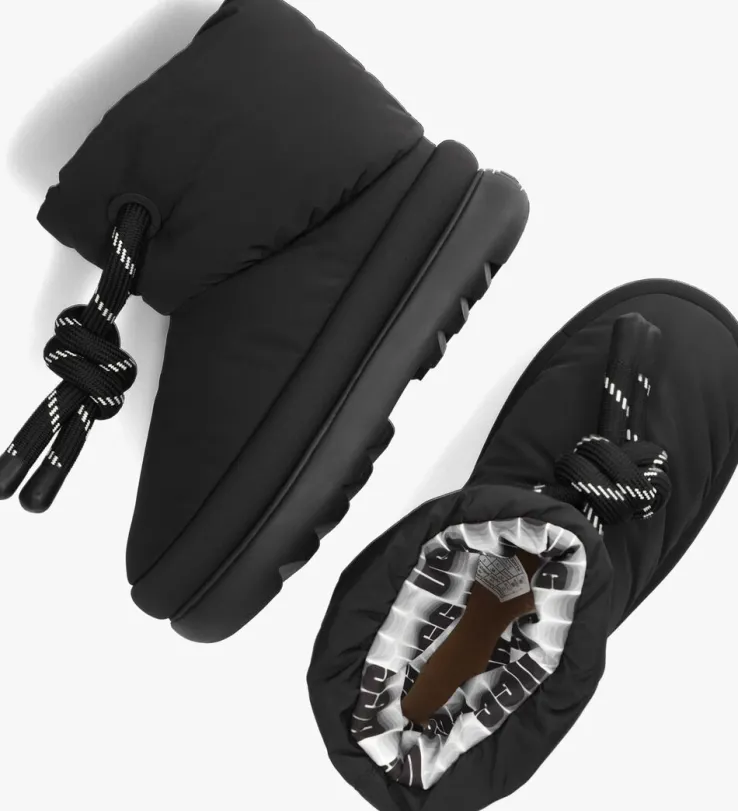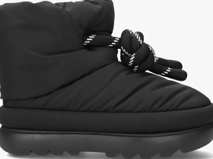 Deze enkelboot W CLASSIC MAXI SHORT komt uit de schoenencollectie van het merk UGG en is perfect voor deze winter! De boot is uitgevoerd in zwart nylon en heeft een bovenwerk in puff-stijl. Door de wolmix voering ervaar je veel zachtheid en warmte tijdens het dragen en de boot heeft een enkelkraag van textiel met merkemblemen. Een opvallend detail is de grote, ronde trekkoordveter en de katoenen zoolrand. De zwarte rubberen zool heeft een merkreliëf op de hiel en heeft een gripvast profiel en zorgt voor voldoende steun en stabiliteit bij al je activiteiten!