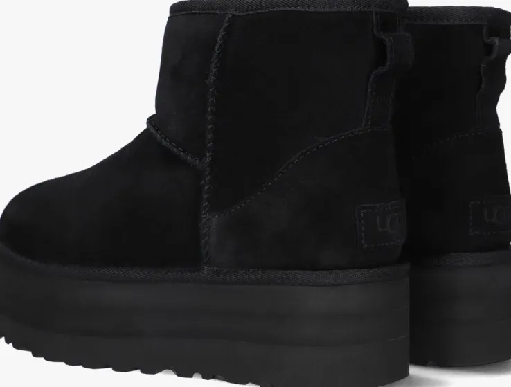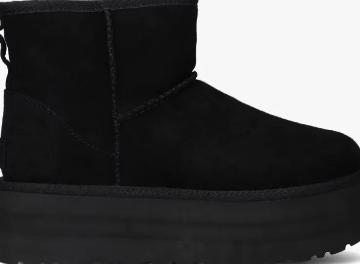 De W CLASSIC MINI PLATFORMis een van de meest geliefde en legendarische modellen van het merk UGG!Deze zwarte enkellaars is gemaakt van suède en heeft een heerlijk zacht binnenwerk van UGGplush™materiaal, wat is gemaakt van 80% wol en20% plantaardig lyocell voor een extra zacht en duurzaam karakter. Het voetbed is niet uitneembaar.DeTreadlitebyUGG™ plateauzool van 6 centimeter geeft je nog meer lengte, comfort, demping en grip en is superlicht van gewicht. De hiel is voorzien van het welbekendesuède merklabel en aantreklus. De schacht heeft decoratieve opstaande naden.Deze veelzijdige laarsjeslaten zich gemakkelijk met vrijwel alles combineren. Probeer eens een losse boyfriend jeans met een fluwelen top of zelfs een zwierige maxi-jurk.
